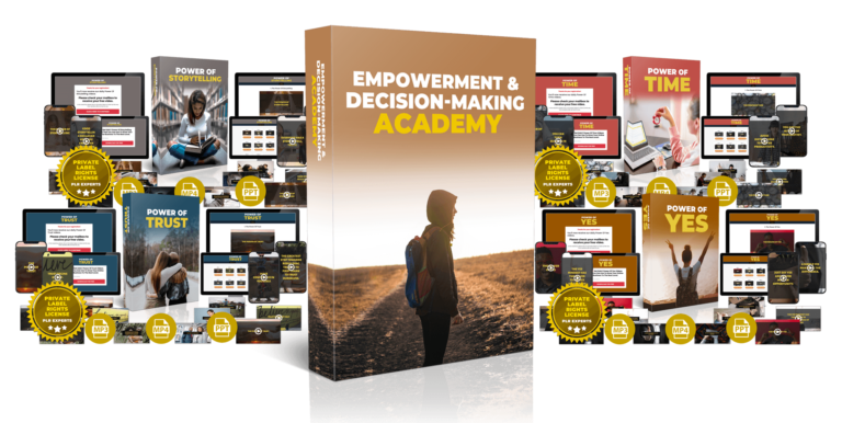 Empowerment & Decision-Making Academy is a comprehensive PLR (Private Label Rights) package designed to provide valuable content and resources in the empowerment niche. It includes 84 re-brandable short videos, a complete training center, editable files, a turnkey website and a full PLR license. The package aims to empower individuals to make informed decisions and find balance while offering opportunities for reselling and profiting from the content in the lucrative empowerment market!